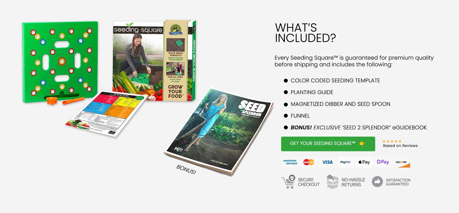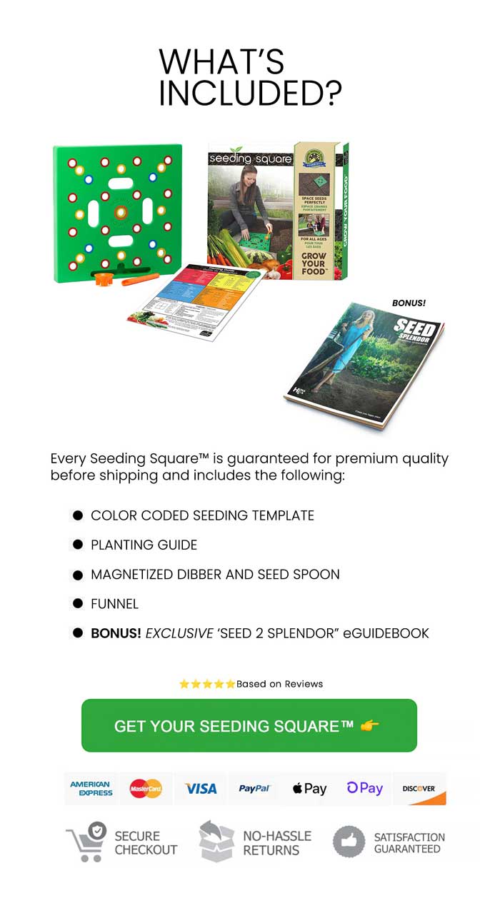 Say good-bye to eyeballing and guessing. Use Seeding Square™ to maximize garden space with innovative planting patterns.
