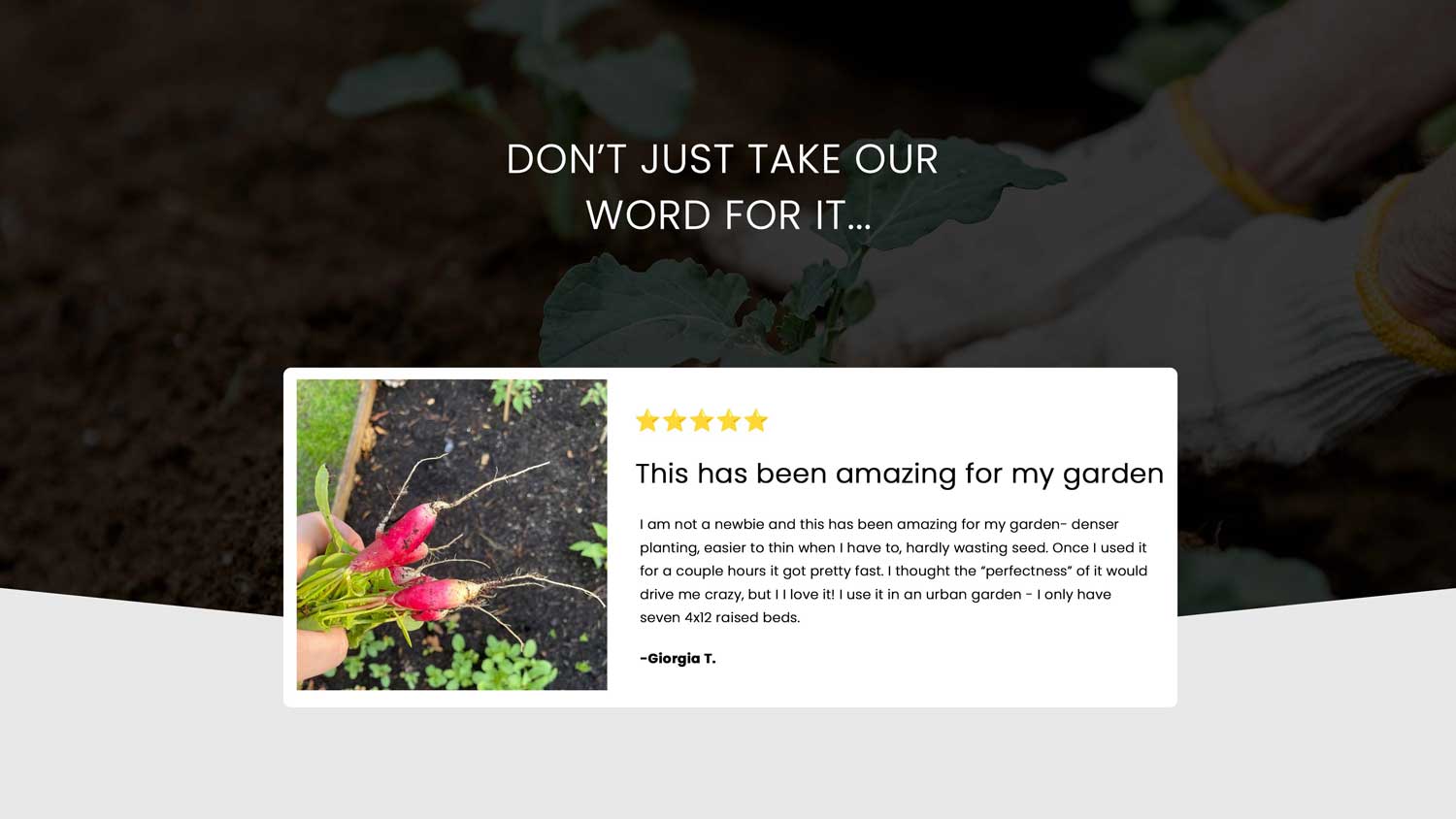 “I love it! It has made sowing so much easier for a novice like myself. I was using a ruler made for gardening which was nice, but not as accurate. This tool comes with a comprehensive legend that guides you in relation to each plant. No guessing! It even assisted with the depths. I’m pleased with this purchase. It’s well made and so useful!”
