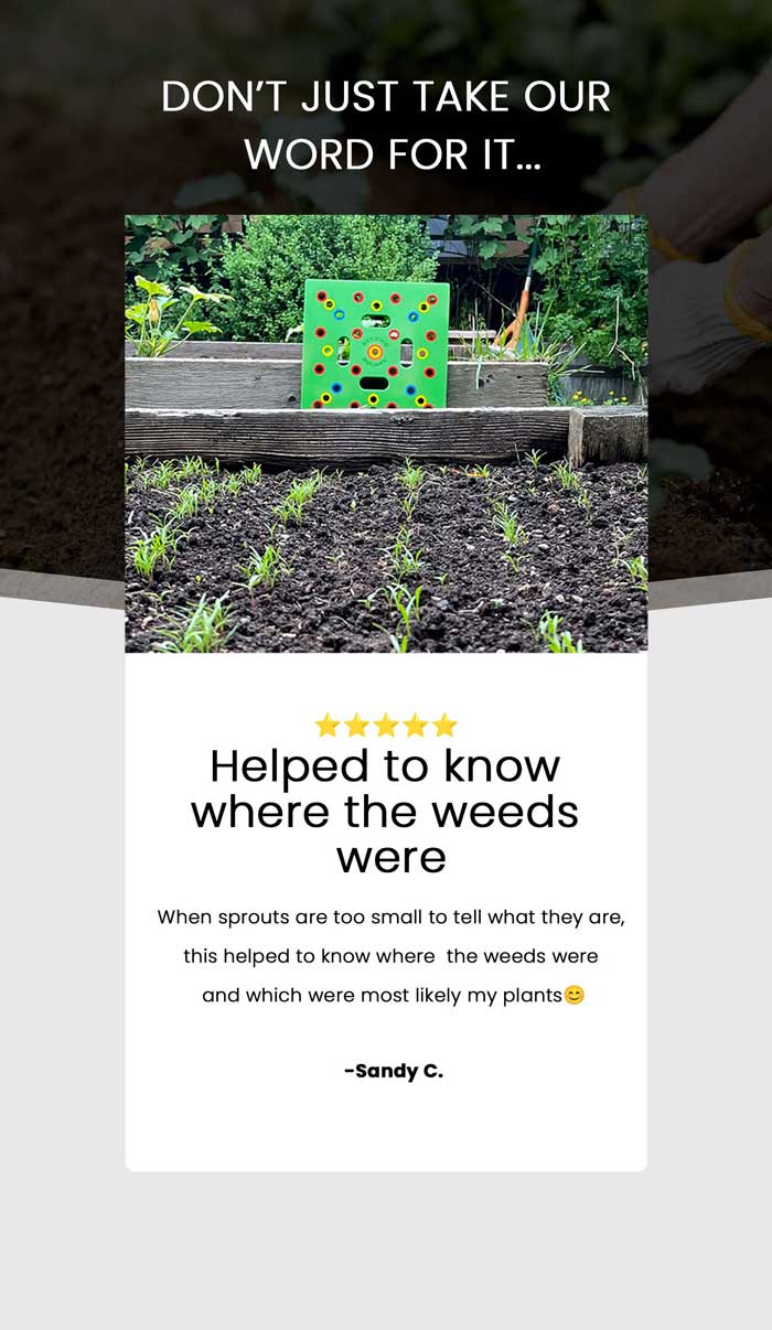 ✅ Spot Weeds Quickly: The perfect interval spacing of Seeding Square™ keeps gardens organized. The patterned placement saves time spotting weeds and keeping gardens maintained.